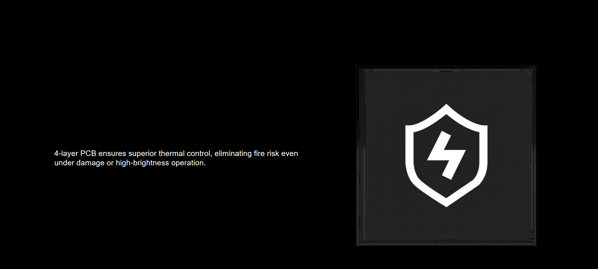 Up to 3500 nits with black LEDs, supported by a 4- layer 20oz PCB for superior heat dissipation, ensuring stable performance and long lifespan.
