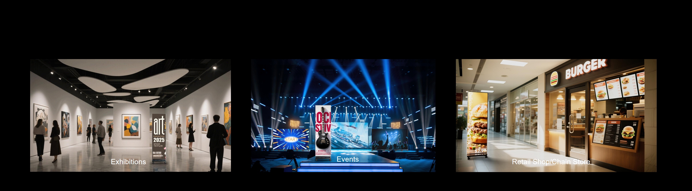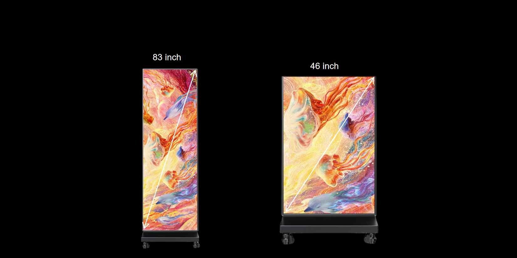 Slim, movable LED poster with dual-sided display design for maximum visibility. Perfect for exhibitions, retail, and corporate spaces.